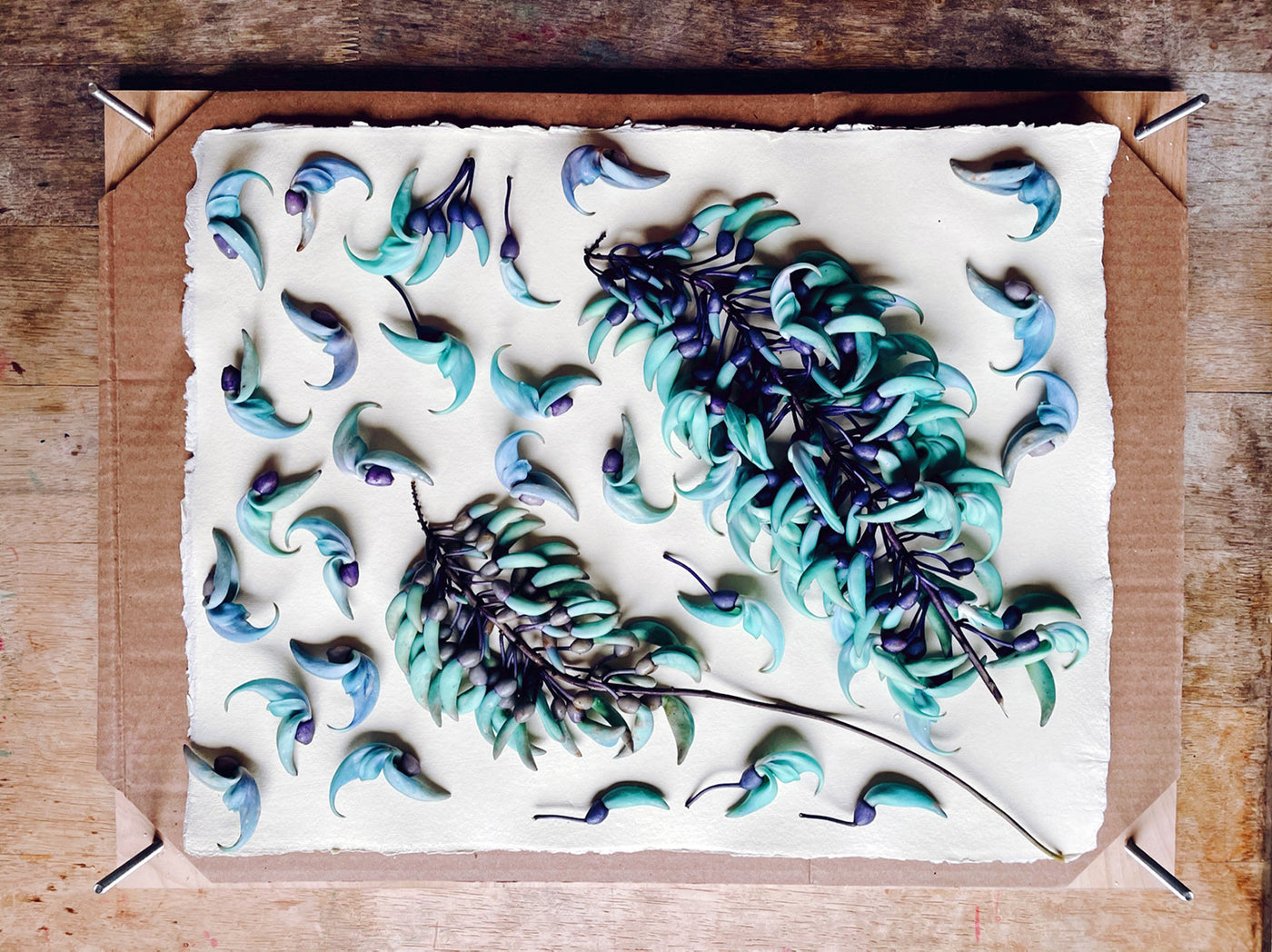 Flower pressing and wild foraging have ancient roots. The best and most authentic method to dry flowers has not changed much over time. It is conceptually easy and yet requires attentive dedication and patience. Using traditional pressing practices, dating back to the 16th century, color and form are beautifully preserved. Foraging must flow with the sunshine and timing of the blooms. Pressing botanicals cannot be rushed; the flowers dry in their own time.